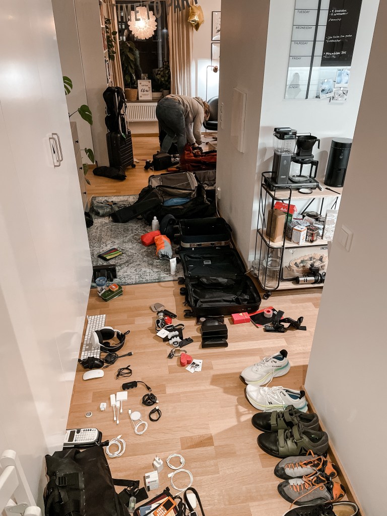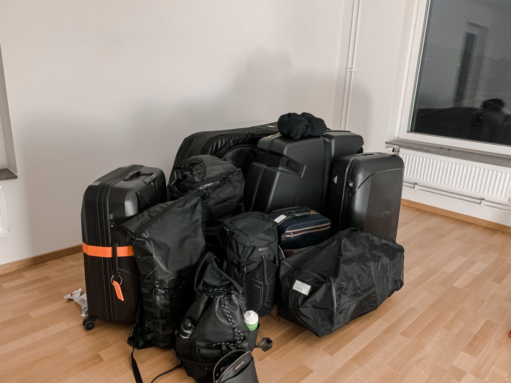 Senaste veckorna har varit en dimma av rensning och packning, men imorgon åker vi! I helgen fick vi hjälp av Emilias familj med sista rensningen och återställande av lägenheten och sedan i söndags bor vi på Bellora. Här ovan ser ni all packning vi tar med oss på flyget (minus de två kabinväskorna vi har på hotellet).