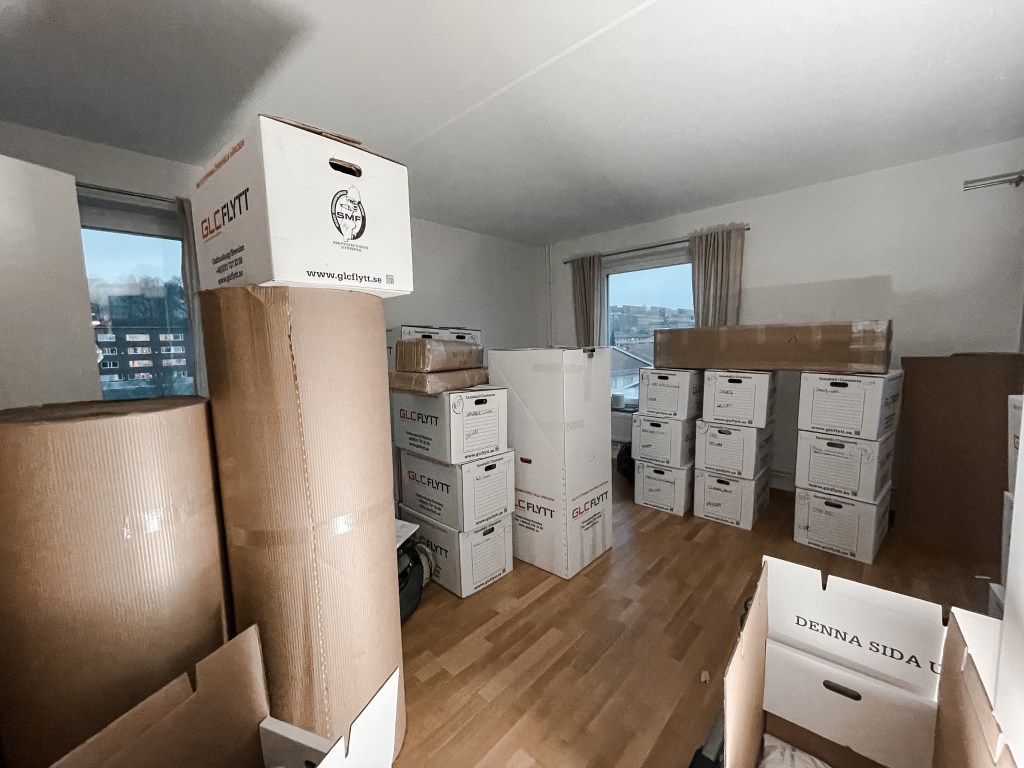 De senaste veckorna har vi inventerat allt vi äger, lagt in allt i ett kalkylark och noterat försäkringsvärdet för allt som ska skickas med båt. I måndags kom flyttfirman och började packa alla våra saker och igår eftermiddag var allt packat och tömt och kördes till containern.