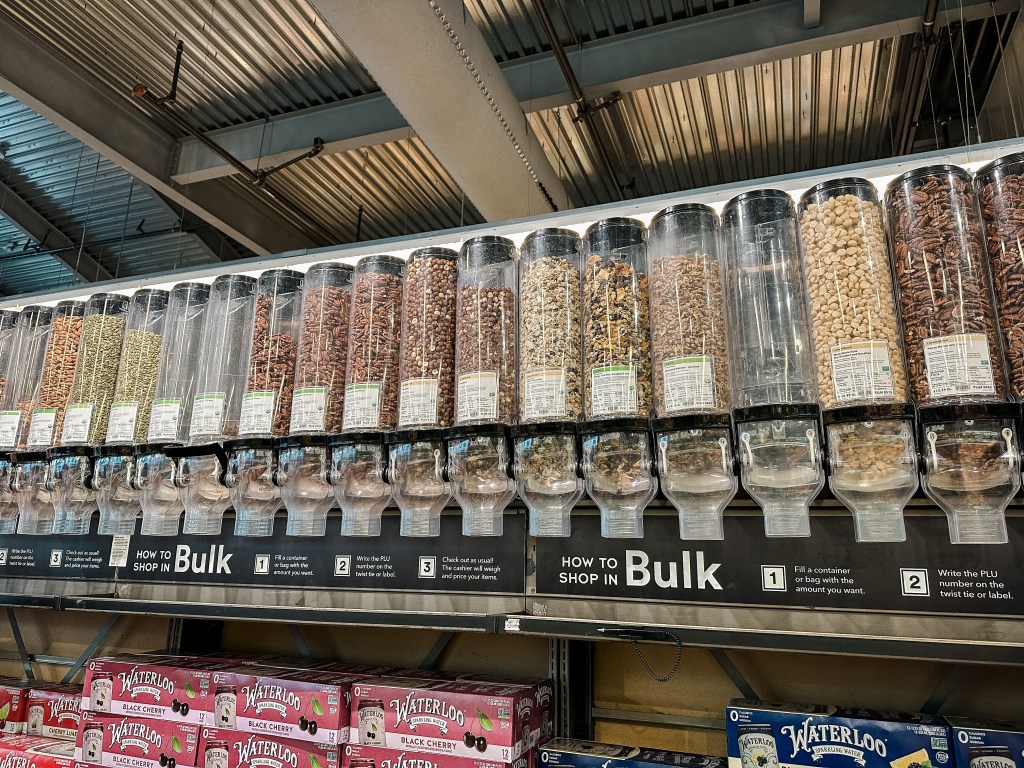 Sedan bar det av mot Whole Foods och veckohandling. En väldigt trevlig grej är att man kan köpa gryn, linser, granola och frön i lösvikt där. En lite (läs mycket) märkligare grej är att man också kan betala med sin handflata. Vi fick frågan för ett tag sedan hur matpriserna står sig här jämfört med hemma. Det är aningens dyrare faktiskt, men sedan bor vi också i det området där cost of living är högst i världen (inkluderat hyra, matkostnader och kostnader för vatten, gas och el). Men för att ge er ett litet hum, så säg att man skulle handla för 1500:- på ICA, då kostar det ungefär 2000:- kronor här.
