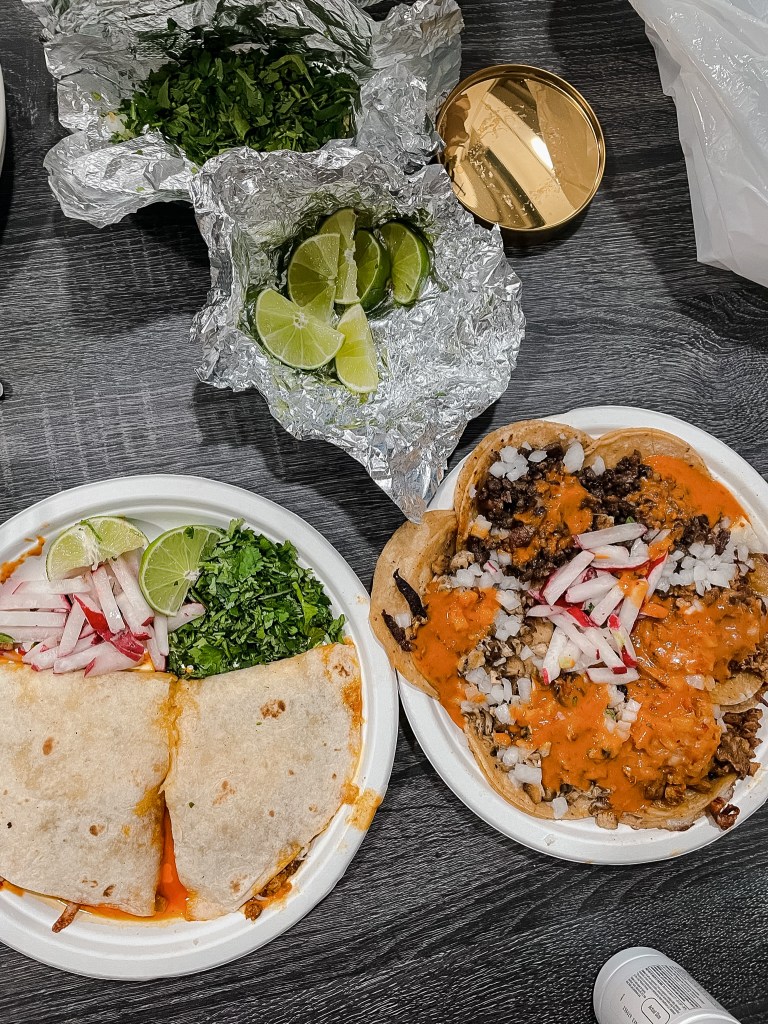 När Linus kommit hem från jobbet gick han också ut en sväng (men lite kortare) bort till närmsta mack där det stod en foodtruck som sålde tacos, burritos och quesadilla. Linus var väldans nöjd över att äntligen få tacos som lagats av en mexikan så han köpte med sig tre olika sorters tacos hem och en quesadilla. Riktigt gott och mättande! Med mat i magen gav vi oss sedan i kast med På spåret. På grund av flytten ligger vi typ en månad efter, så vi plöjde två avsnitt den här kvällen och vann ett vardera.