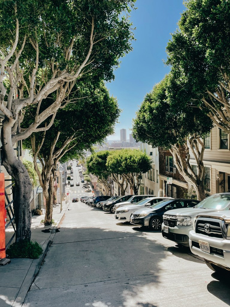 När vi var mätta och belåtna tog vi en promenad till Coit Tower uppför de sjukt branta backarna. Man ser inte riktigt på bilderna hur brant det är, men det blev ju nästan ett träningspass.