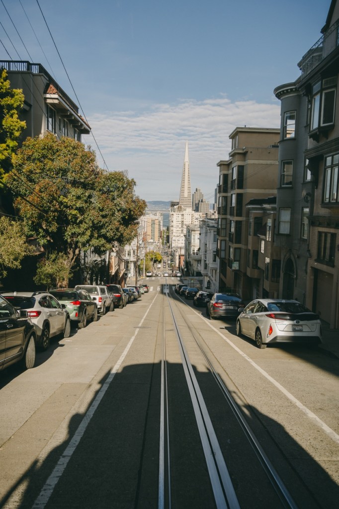 Det är lite svårt att fånga på bild, men vissa backar är så otroligt branta i den här staden. Ibland är jag liksom osäker på om bilen verkligen ska orka uppför backarna. I cable car satt vi på ganska glatta träbänkar så vi gled ju runt en del i alla dessa backar.