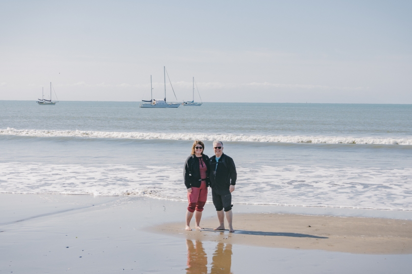 Vi började med att ta väg 17 genom bergen och ut till havet och närmare bestämt Santa Cruz. Från vårt hem i Los Gatos tar det ungefär 30 minuter om det inte är köer. Vi stannade till vid Santa Cruz Beach Boardwalk Amusement Park, som var stängd just då men man får går runt där ändå. Mamma och pappa passade på att doppa fötterna i Stilla Havet.