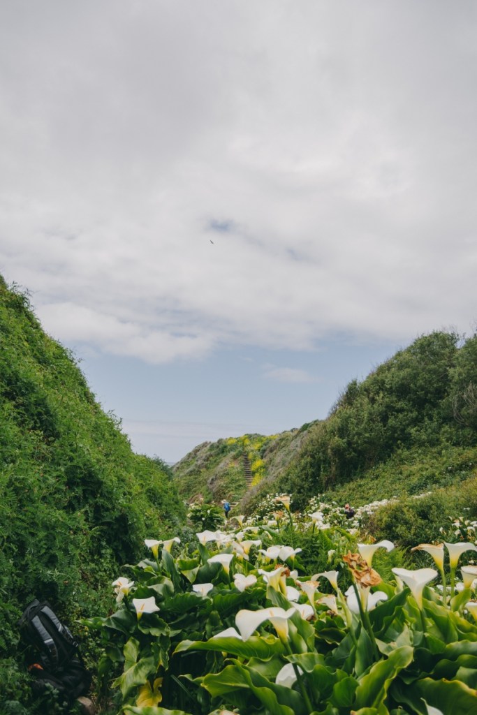 Nästa stopp blev Calla Lily Valley och vi kom väl i grevens tid innan alla blommor vissnade. Det är en liten skreva intill havet där det växer kallor (tror det heter så på svenska) och för att komma dit går man en runda på kanske 500 meter. Kallorna blommar ungefär från februari till april och går även att se från vägen när man kör över den lilla skrevan/dalen. Här passade vi även på att äta vår medhavda lunch. Rekommenderar verkligen att ta med lunch så man kan stanna och äta när man vill, eftersom det inte finns så mycket restauranger utmed vägen.