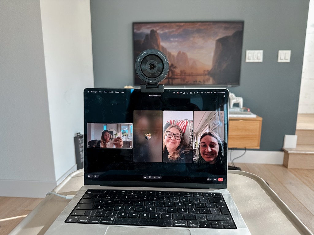Har videosamtal med Emma, Elin och Tove, brudarna jag pluggade bioteknik med.