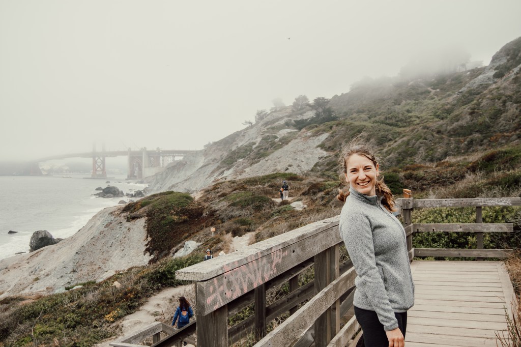 Leden går längsmed kusten, är väldigt lättvandrad (typ grusväg hela vägen, förutom en bit på stranden) och om det inte är dimmigt får man en bra vy av Golden Gate Bridge. I början kan man även se Sutro Baths, som tidigare var ett populärt saltvattenbadhus men som brann ner på 60-talet (andra bilden).
