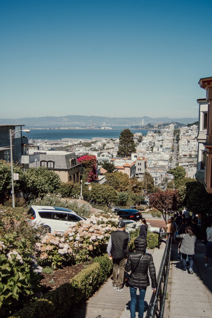 Vi traskade vidare via Fisherman’s Wharf bort till Pier 39 för att se om det fanns några sjölejon där. Det gjorde det tyvärr inte, så vi gick tillbaka mot bilen för att se staden från ovan. Och angående Fisherman’s Wharf – ska ni turista i San Francisco kan ni skippa detta. Det finns absolut inget kul att se och det är bara en massa krimskramsbutiker och överprisade turistrestauranger. Pier 39 är också superturistigt, men kan väl ändå vara värt att se i alla fall och vill en köpa merch är detta platsen för det!