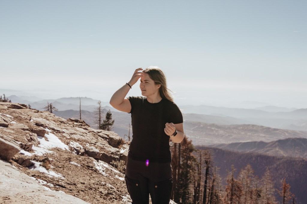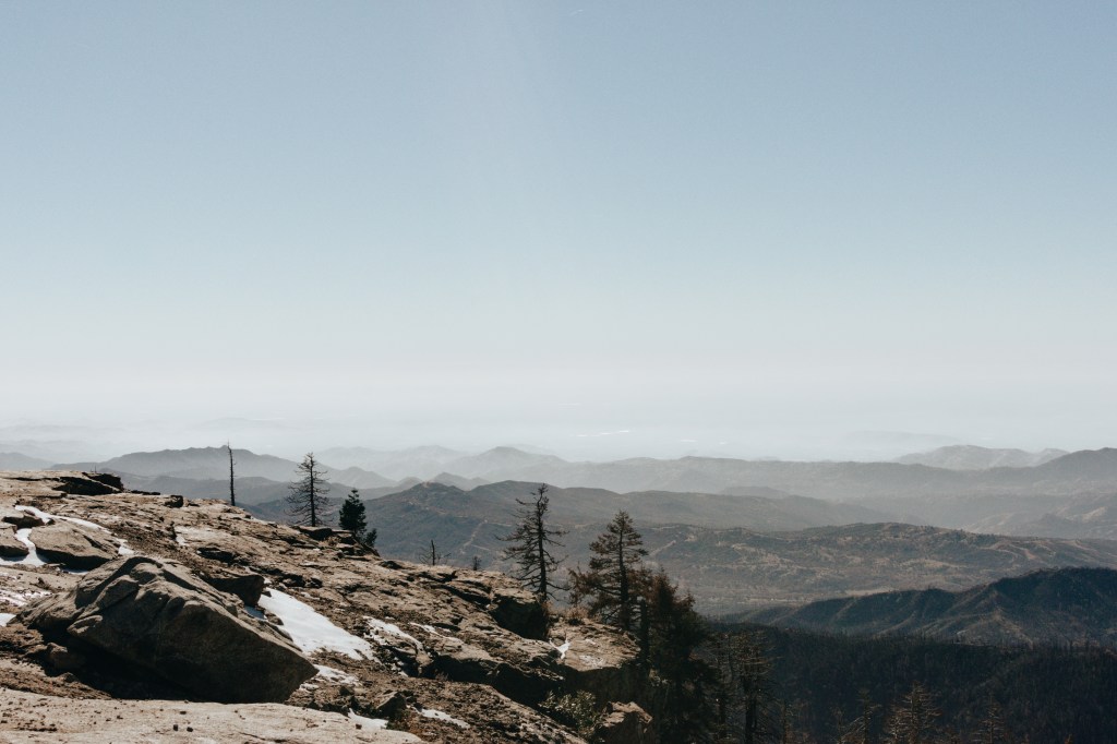 Lunch, i form av frystorkad mat, intogs på toppen, med en 360-graders vy över Sequoia och Kings Canyon. Dagen innan hade det varit otroligt molnigt och disigt, men den här dagen hade vi tur då vi såg hela vägen bort till bergskedjan vid kusten (ungefär 20 mil fågelvägen).