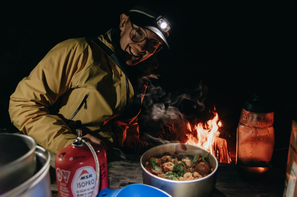 När det blev mörkt körde vi tillbaka ner till campingen och lagade tortellini med tomatsås, salami och spenat. Mycket bra campingmat om man köper torkad tortellini, då det inte behöver stå kylt.